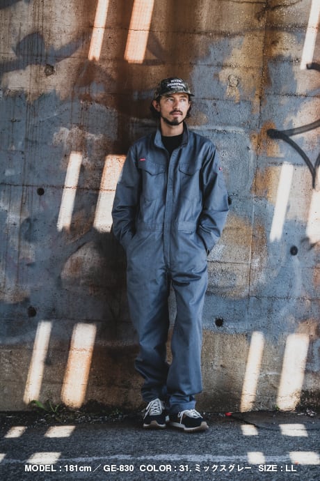 一度着ると他のツナギには戻れない便利なヒップオープン機能『GRACE BACK®』がついているにも関わらずお求めやすいプライスを実現したデビュー応援モデルです。カラバリは全6色で、サイズも女性も着れるSS~ガッシリ体系の5L、更に身長そのままで身幅ゆったりなB体サイズまで展開しており、個人着用は勿論のことチームで揃えてユニフォーム使いもできてしまう、まさにオールマイティーなツナギです。
