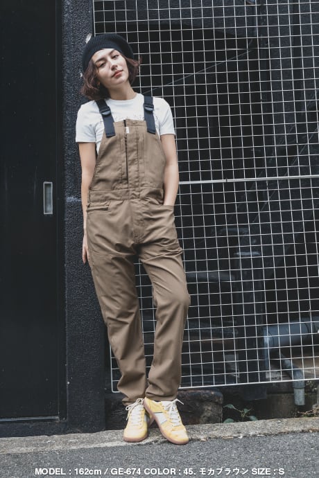 生地全体から清涼感を感じる格子状の織りの間に通気穴が開いた軽ろやかな生地が特徴。さらに暑さによるストレスのみならず、特許取得のヒップオープン機能『GRACE BACK®』も搭載で、お手洗い時のストレスからも解放されます。ファスナー付きの胸ポケットやスマホ用ポケット、金具類も表面に出ていないプロ仕様の本格夏サロペットです。
